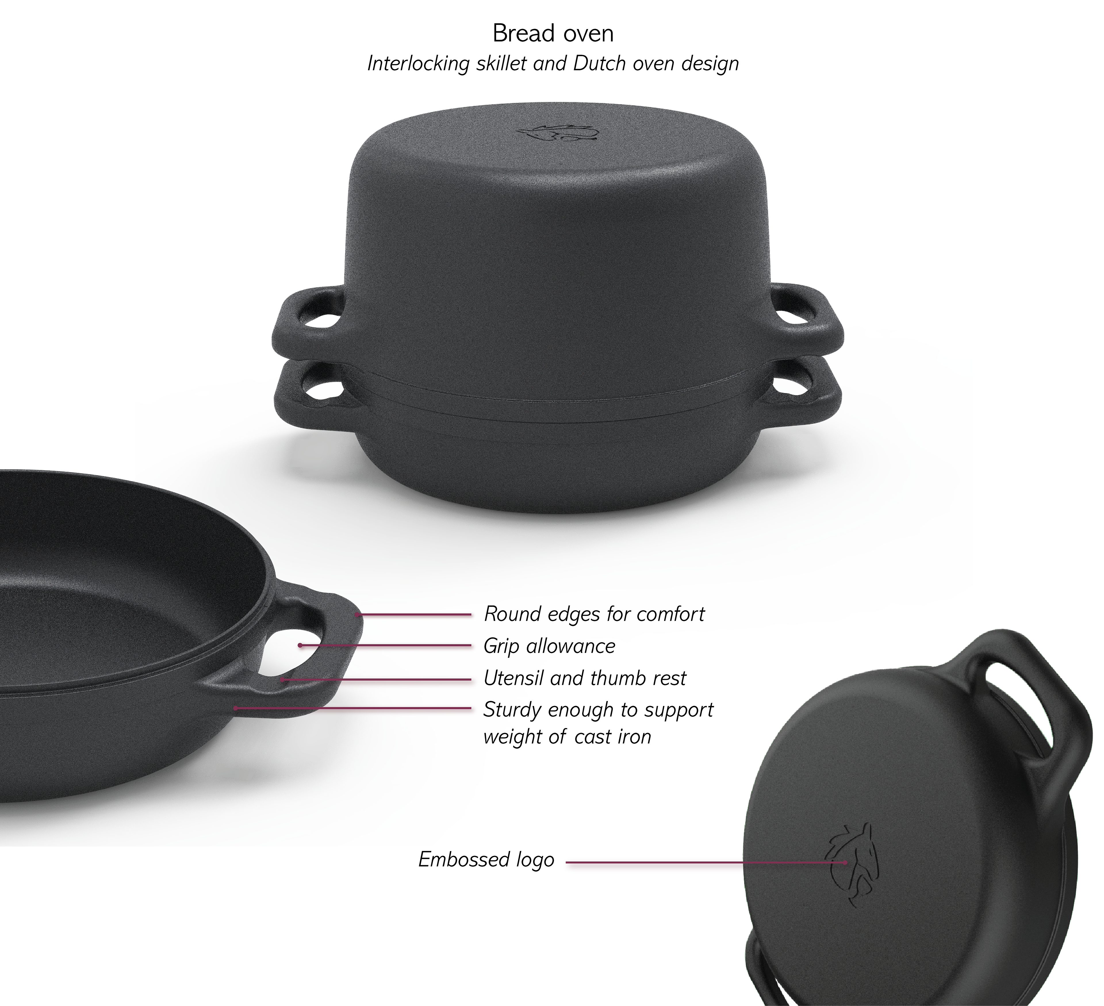 3 Cast Iron Vessels designed with a single intention: to aid in baking bread-based appetizers or side dishes.