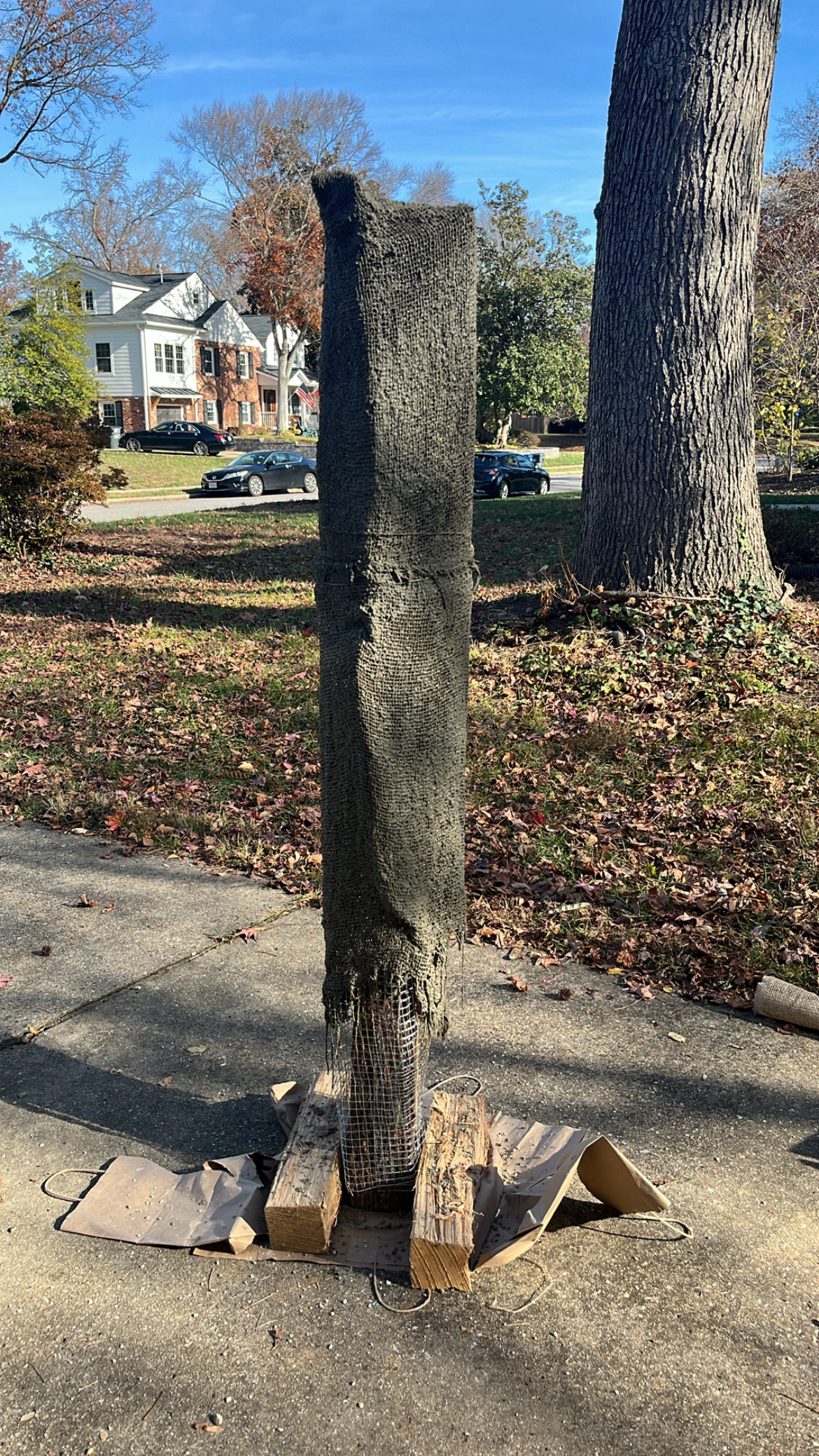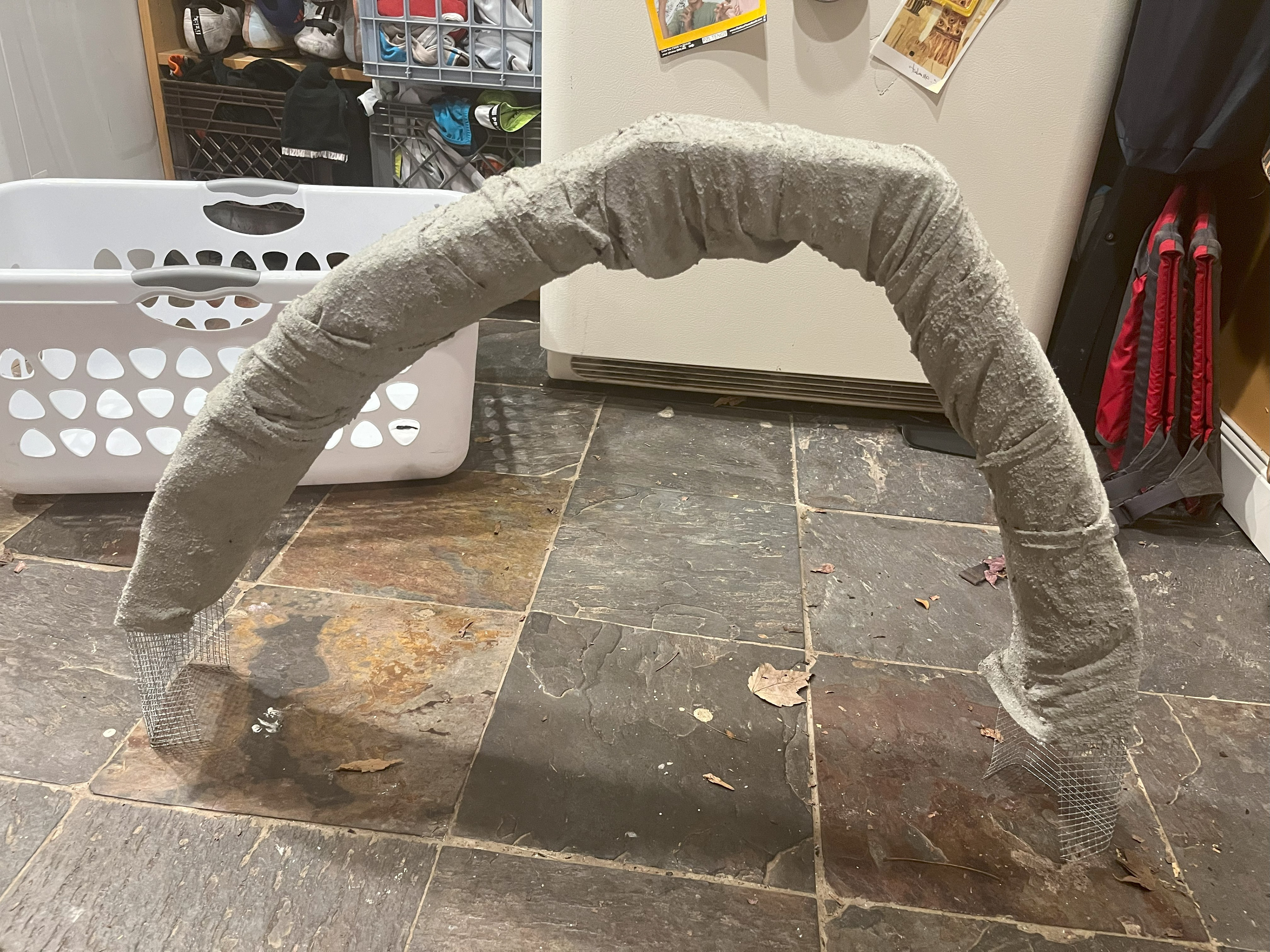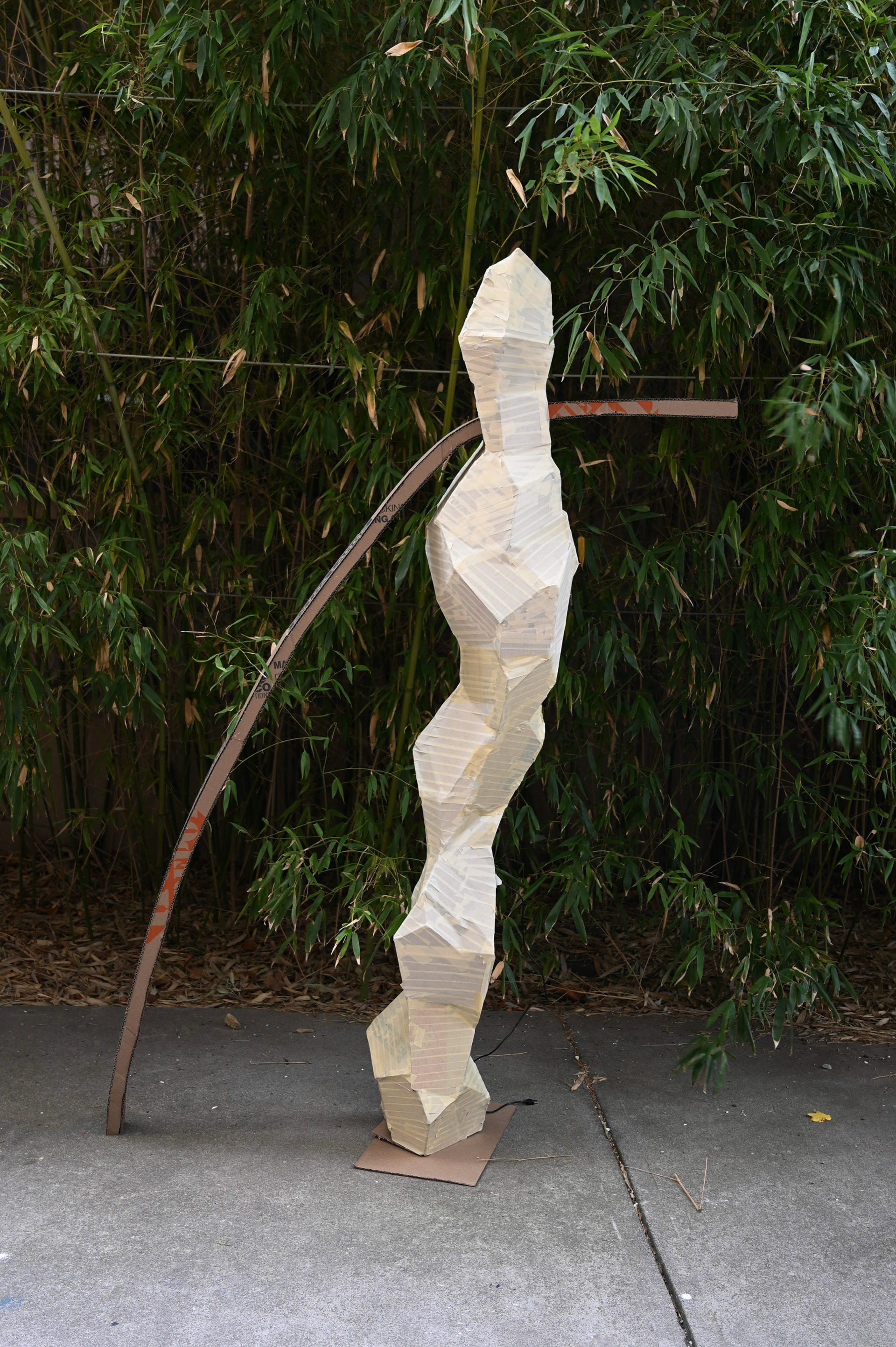 Casting a statue from concrete would be exceptionally heavy. Weight limitations inspired experimentation with a different casting method: fabric casting.
