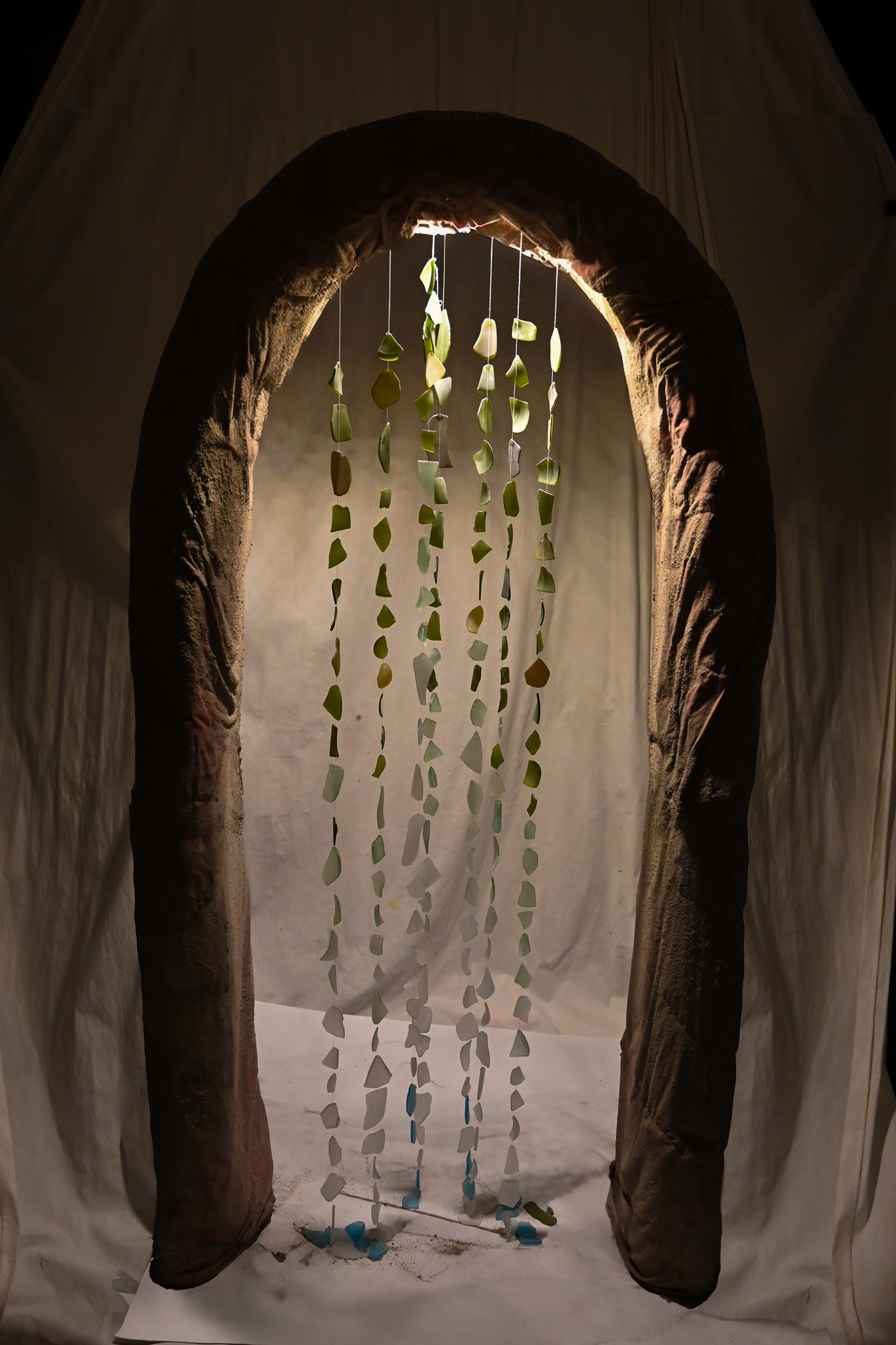 The Luminary combines a fabric-cast concrete arch with tumbled recycled glass. It incorporates a preexisting light fixture, rewired.