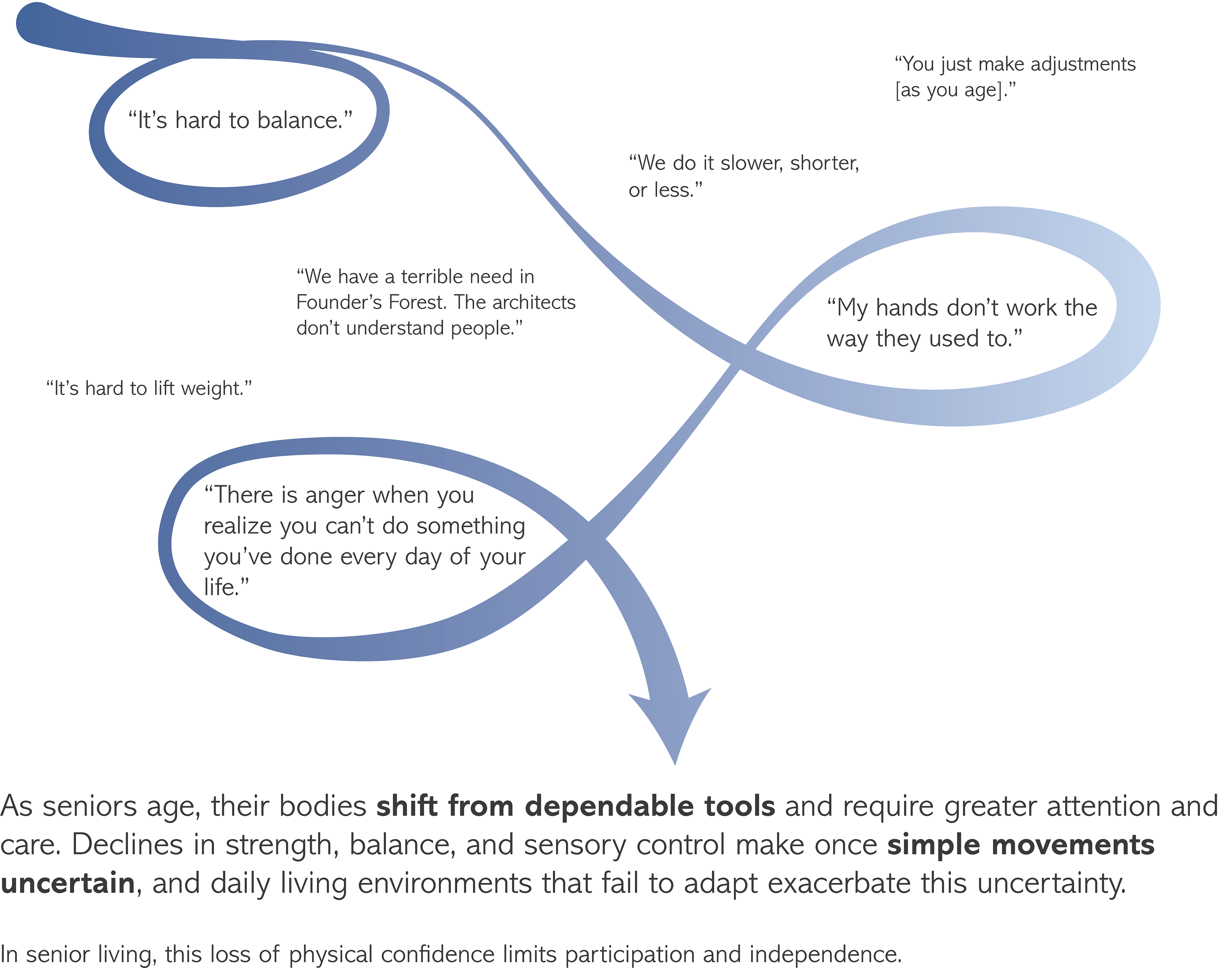 How might we design a tool to restore physical confidence for seniors, enabling them to move safely, independently, and with dignity?